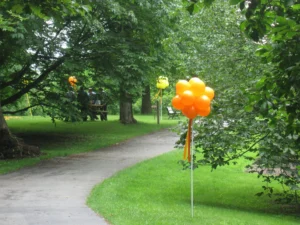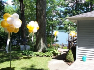Celebrate your special occasion with lawn balloons. Order special social distancing lawn balloons today. We create balloon topiaries that can be used as a centerpiece, placed on a fence, top a pole or stand stick.